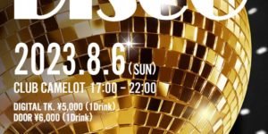 【東京都・渋谷】THE DISCO @ クラブキャメロット 【運営より注意事項】 オンラインチケット購入者の方へ 今回、オンライン販売サイトにてチケットを販売予定です。 システム上「発送致しました」とメールが届きますが、 チケットの発送はございません。 当日は「発送致しました」のメール画面を受付にて表示頂くと御入場できます。 分かりにくいシステムで皆様にご迷惑をお掛け致しまして誠に申し訳ありません。 何卒ご理解頂けますと幸いです。70’s 〜90’s ディスコシーンを盛り上げたDJ 16名がここに結集 CLUB CAMELOT 3フロアで当時の選曲が再現される 前回開催も満員御礼だったSPECIAL EVENT ! 【THE DISCO】 ■日時:2022年8月6日(日) 17:00〜22:00 ■会場:渋谷 CLUB CAMELOT(クラブキャメロット) 〒150-0041 東京都渋谷区神南1-18-2 神南坂FRAME B3 …