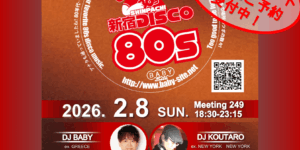 『SHINPACHI新宿DISCO80s』 MAHARAJA六本木 2026年2月8日(日)18:30開催 第249回『SHINPACHI新宿DISCO80s』 @MAHARAJA六本木 ↓前回開催の模様↓ お得なディスカウントその他ご予約受付中! 19:30まで2,500円1ドリンク付 19:30より3,000円1ドリンク付 ディスカウントご希望ご予約はこのページの一番下にあるイベント申込フォームから必要事項を送信すればオッケー!ディスカウント料金にてご優待! 初めての方も、1名様からグループ(シェアテーブル特典付き)まで、どなたもお気軽にどうぞ! ※既にグループやバースデー等ご予約されていて、その人数に含まれている方は、ディスカウント料金となっています。重複して個々のお名前でディスカウント申込みをする必要はありません。 ※イベント開催時間直前後などのお申し込みは、登録漏れがある事がございます。お早めにお申し込み頂くようお願い致します。 ※シェアテーブル(お仲間同士でシェアして利用出来るテーブル)は5名様以上のご予約が優先となります。通常のディスカウント申込では当日のご予約状況によりディスカウント特典のみのご案内になる事がございます。 また、シェアテーブルとはご予約の人数分の座席数をリザーブするシステムではございませんので、状況によりお席は譲り合ってご利用下さい。 座席数を人数分リザーブしたいお客様は別途一般席のリザーブ(別途お一人様1,000円)をご希望とお伝え下さい。 DJ BABY(ex. GREECE)、DJ KOUTARO(ex. NEW YORK, NEW YORK, XENON) バースデー等のお祝いをご希望されるお客様は、ディスカウント申込の際に バースデー(お祝いされる方)の呼び名(フリガナ付)をお伝え下さい。 開催当日21:30頃からお祝いコールを致します。(コールタイムは一度に限らせて頂くため、お時間には店内にいらっしゃるようお願い致します) シンパチバースデー記念品プレゼント及びスパークリングボトルをサービスご用意します。 お祝い用シェアテーブルを無料で用意します。(座席数は予約数に満たない場合がございます。) … 続きを読む 2/8(日)18:30『SHINPACHI新宿DISCO80s』MAHARAJA六本木